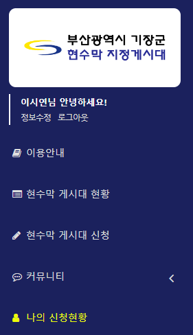 2. 로그인를 하고 현수막 게시대 신청 메뉴에 들어갑니다.