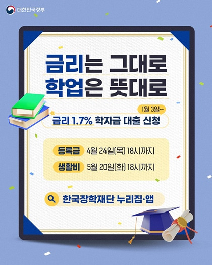 학자금대출은 대학생활을 좀 더 원할하게 하기 위해 국가에서 시행하는 대출제도이니 저렴한 금리로 대출을 받아 공부할 수 있도록 제도를 잘 활용하기 바란다.