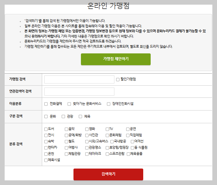 2. 누리집 상단에 [사용하기 > 온라인 가맹점] 메뉴로 들어간다.
