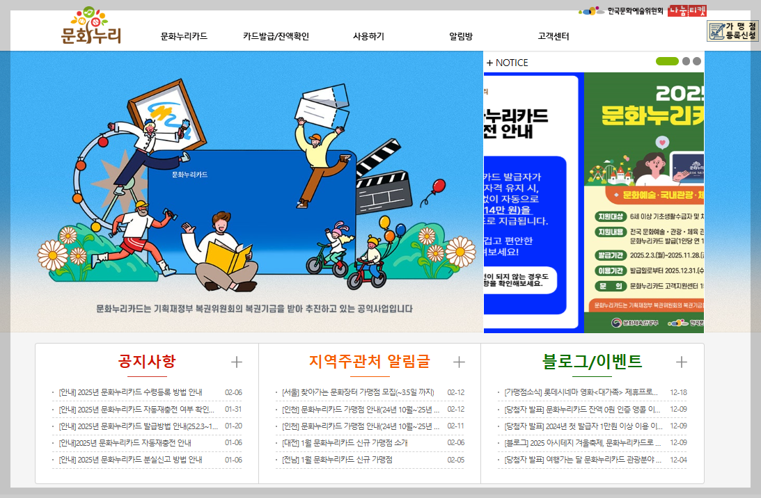 1. 먼저 문화누리카드 누리집으로 들어간다.