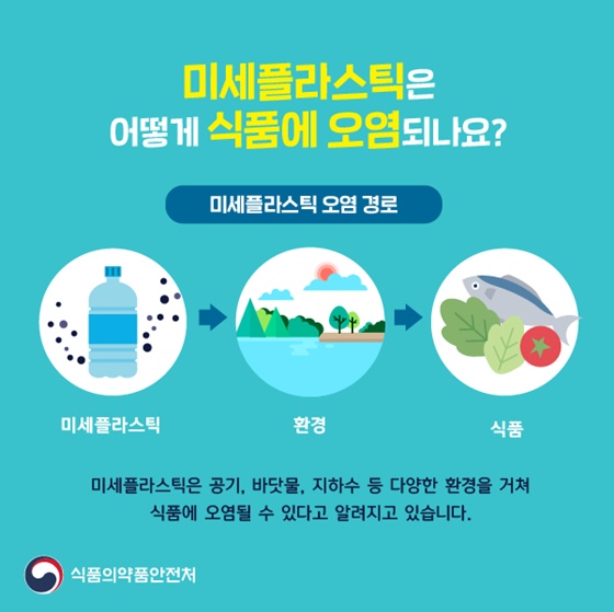 이런 미세플라스틱은 공기, 바닷물, 지하수 등 다양한 환경을 거쳐 다시 물이나, 야채, 과일, 어패류 등으로 들어가게 되고 다시 우리의 식탁으로 올라오게 됩니다.