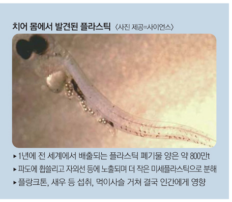 플라스틱 쓰레기는 태양광에 노출될 경우 부식돼 0.13㎍(마이크로그램1㎍은 100만분의 1g) 이하 초미세플라스틱과 670㎍ 이하의 미세플라스틱으로 변합니다. 미세플라스틱은 바다에 가라앉거나 부유하며 해양 생물에게 흡수됩니다.