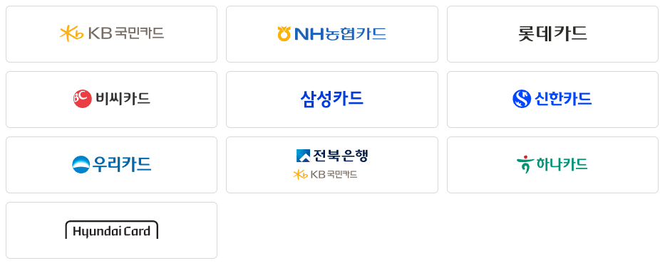 9개 카드사(국민, 농협, 롯데, BC, 삼성, 신한, 우리, 하나, 현대카드)