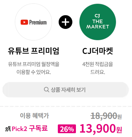 - 유튜브 프리미엄 서비스와 다른 서비스 한개를 추가하여 맞춤으로 지원하는 구독서비스